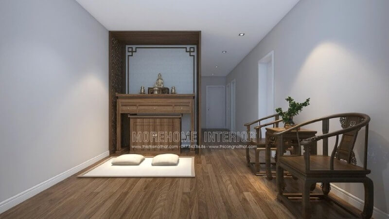 Mẫu tủ thờ gỗ óc chó tự nhiên đẹp, hiện đại sang trọng cho phòng thờ Phật tại gia.