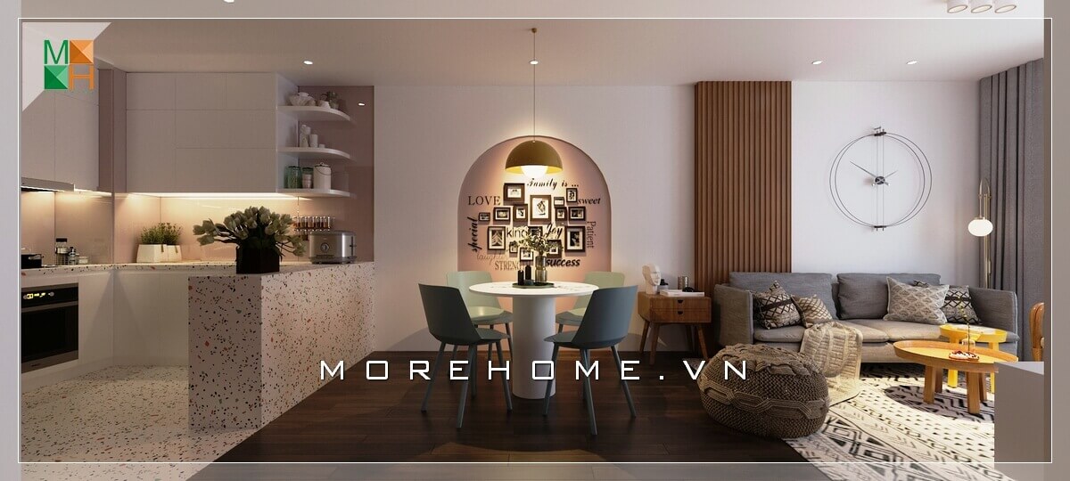 Thiết kế nội thất phòng ăn nhỏ phong cách hiện đại trẻ trung phù hợp cho không gian chung cư