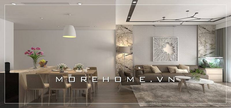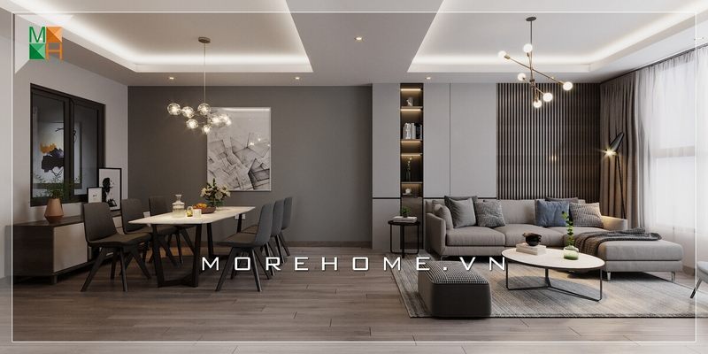 Mẫu thiết kế nội thất chung cư đẹp với tone màu ghi nhẹ nhàng và ấm cúng