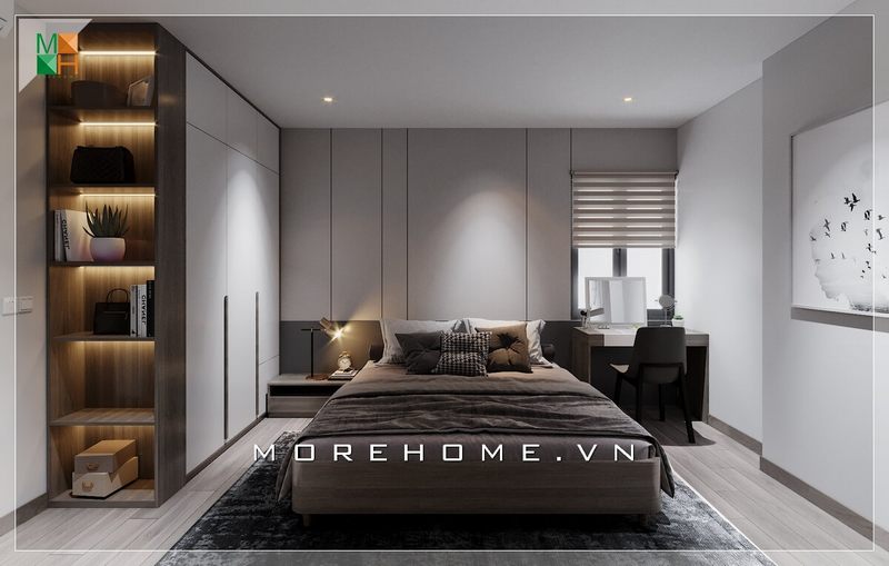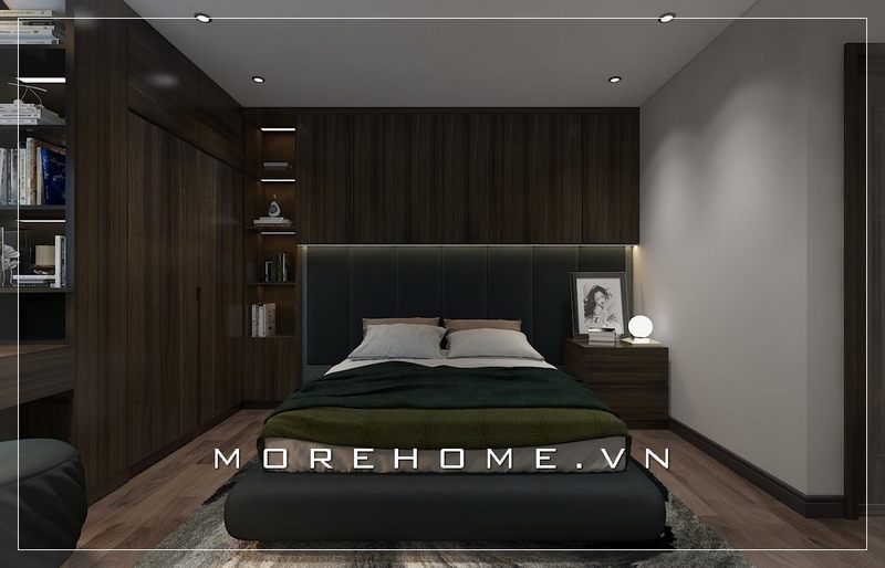 Nội thất phòng ngủ Master chung cư hiện đại với chất liệu gỗ chủ đạp đáp ứng được nhu cầu của gia chủ trong quá trình sinh hoạt và nghỉ ngơi