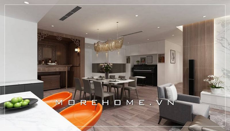 Mẫu thiết kế nội thất chung cư cao cấp được sắp sếp hợp lí tạo cảm giác thông thoáng cho không gian căn nhà